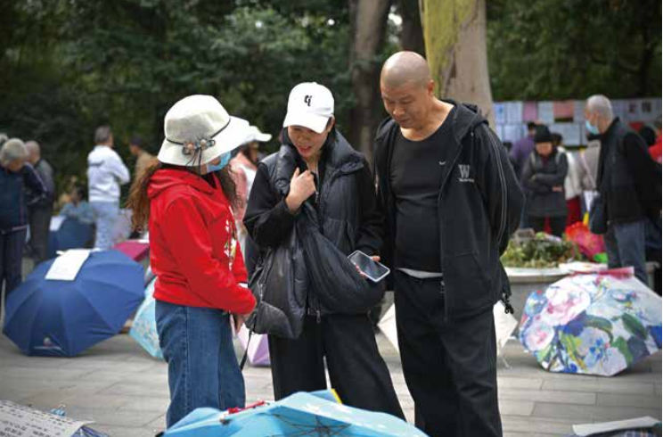 在荟萃应酬主导的时间,公园相亲角依然是许多东谈主“脱单”的线下平台。(图/Zhong)